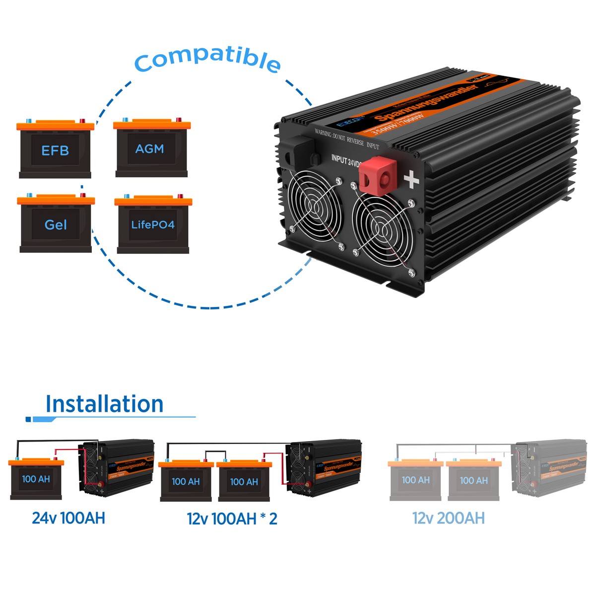 EDECOA Convertisseur Pur Sinus 12v 220v Onduleur 2500w Avec Télécommande Onduleur Onde Sinusoïdale Pure Convertisseur 12v 230v (2500w Pro