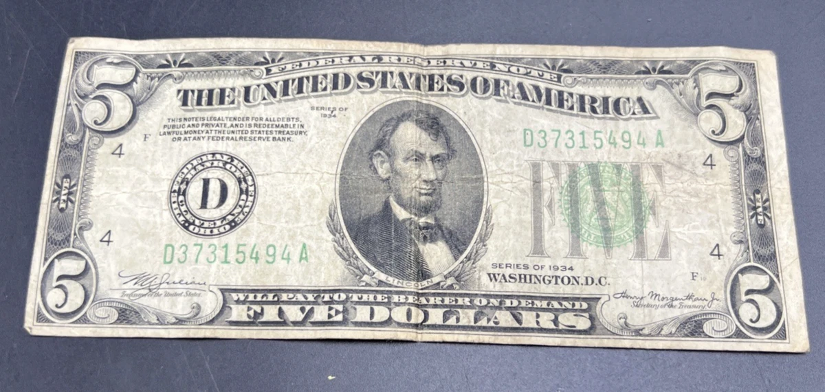 Banconote Riprodotte 1934 Reproduction Set 1934 Fed Reserve Notes $500 $1000 $5000 $10,000 Copy See Below - Arsenal Productions - Spectacles à Brest Riproduzioni A Scopo Educativo PMG 35 $500 1934-A Federal Reserve Note Cleveland, OH FR#2202-D (DA Block) *2384 Country/Region of Manufacture: United States The action of the Federal Reserve Board in requir- ing higher bank reserves has been given a constructive interpretation in informed circles and is not...Caratteristiche e scheda tecnica
