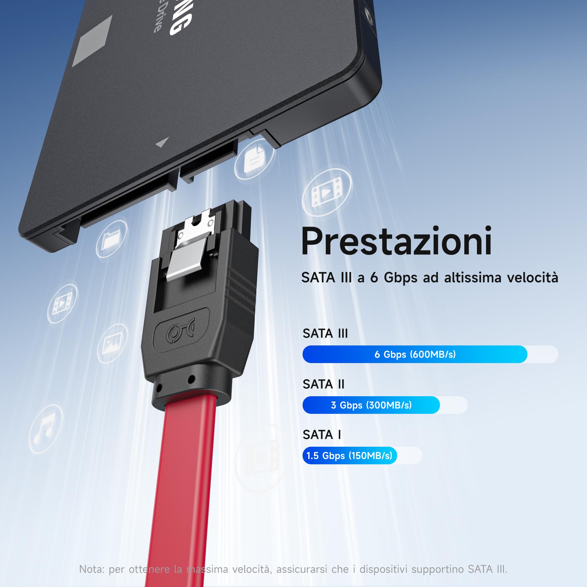 CAVO SATA 3 6Gb/s PER SSD HARD DISK INTERNO 2.5 3.5