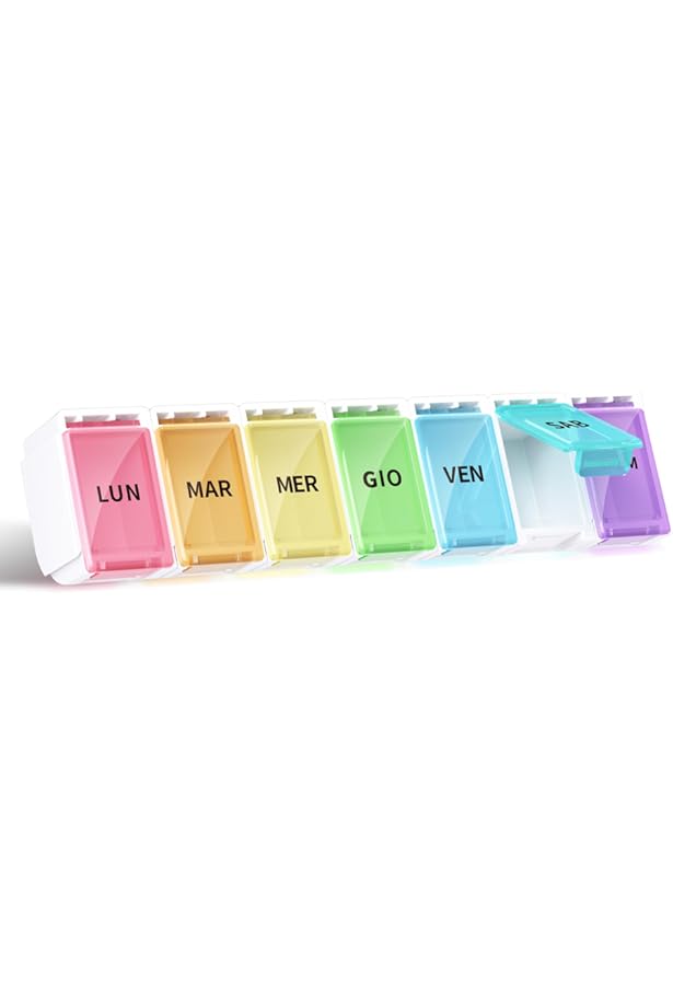 Organizer Pillole Trasparente 2x Portapillole 7 Giorni, 2 Scomparti, Mattino E Sera, Scritte In Inglese Contenitore Farmaci Settimanale Bianco Blu 86648277 Scatola Medicinali Plastica Features: Lock Compartment, Transparent, MPN: Does Not Apply Portapillole mensile 7 giorni medicina quotidiana portapillole scatola 8 scomparti portapillole portatile in paglia di grano vitaminico Godi una riduzione su 1 Confezione Porta Pillole Settimanale da Viaggio, Organizer per Pillole Rotante Carino e Rotondo con 7 Scomparti Grandi, Contenore per Medicinali in Plastica da 7 Giorni, Porta Caramelle Portatile, Organizer per Pillole da Viaggio, Contenore Portatile Mini per Medicinali, Scatola per Pillole con Lettere Chiare... Number of Daily Compartments: 7, Colour: Clear, EAN: Does not apply Per ulteriori dettagli vedi l'inserzione., Brand: PILLBOX, Type: Pill Holder, Number of Days: 7, Material: Plastic Design: la scatola per pillole ha 7 ampi scomparti che possono fornire una settimana di spazio di archiviazione. Questo è conveniente per ricordare alle persone...Caratteristiche e scheda tecnica