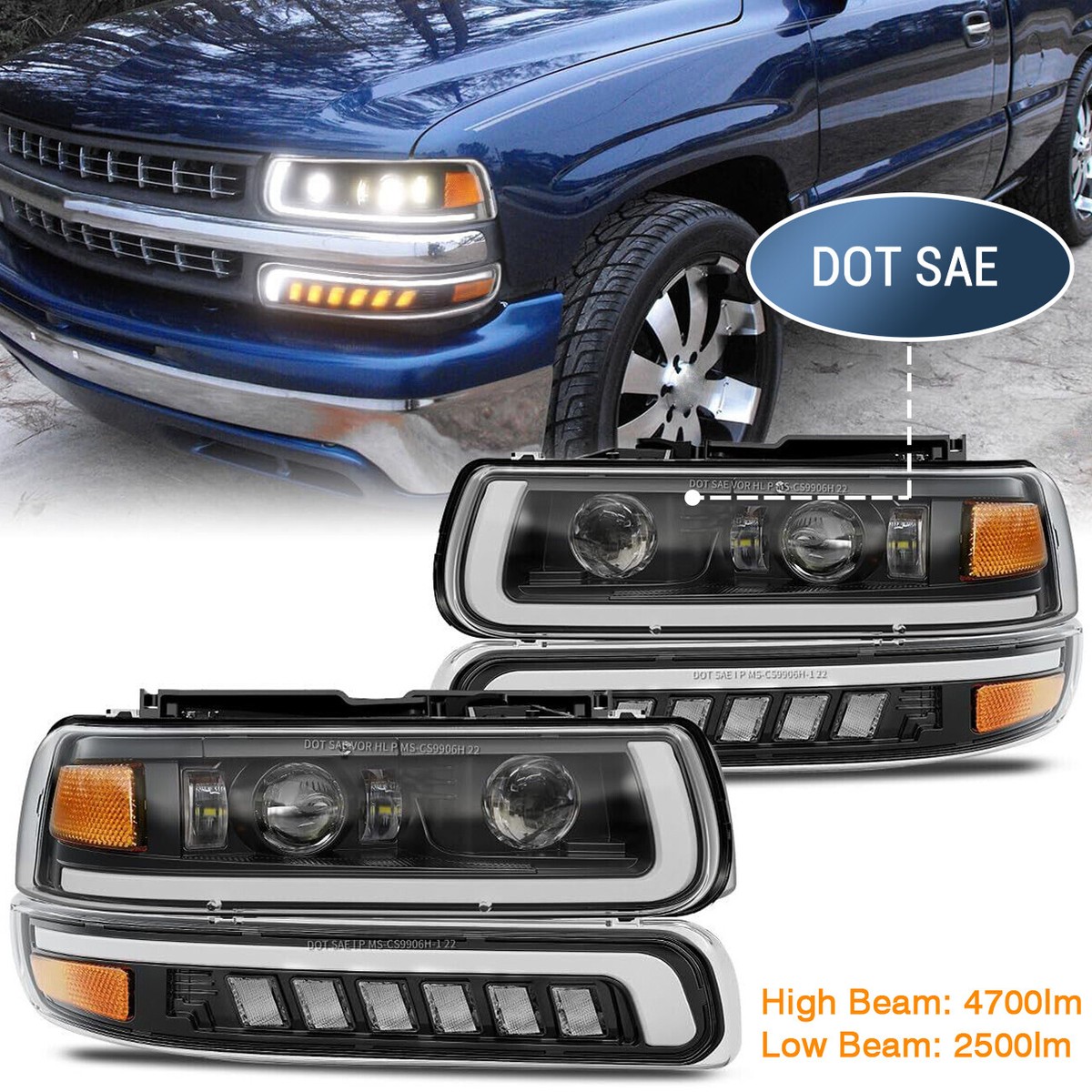 93-98 Jeep Grand Cherokee Black Led Crystal Headlights 6in1