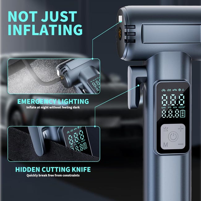 Compressore D'aria Portatile Da 120W Pompa Gonfiabile Wireless/cablata Pompa Ad Aria Portatile Gonfiatore Per Pneumatici Digale Per Palloni Da Bicicletta Per Auto