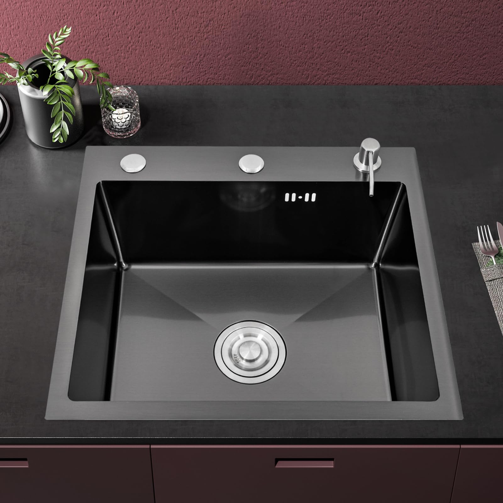Lavello Nero 49 X 50 Cm Con Raccordo Nero Bergström | Nero | 49x50 Cm | 406673137049808