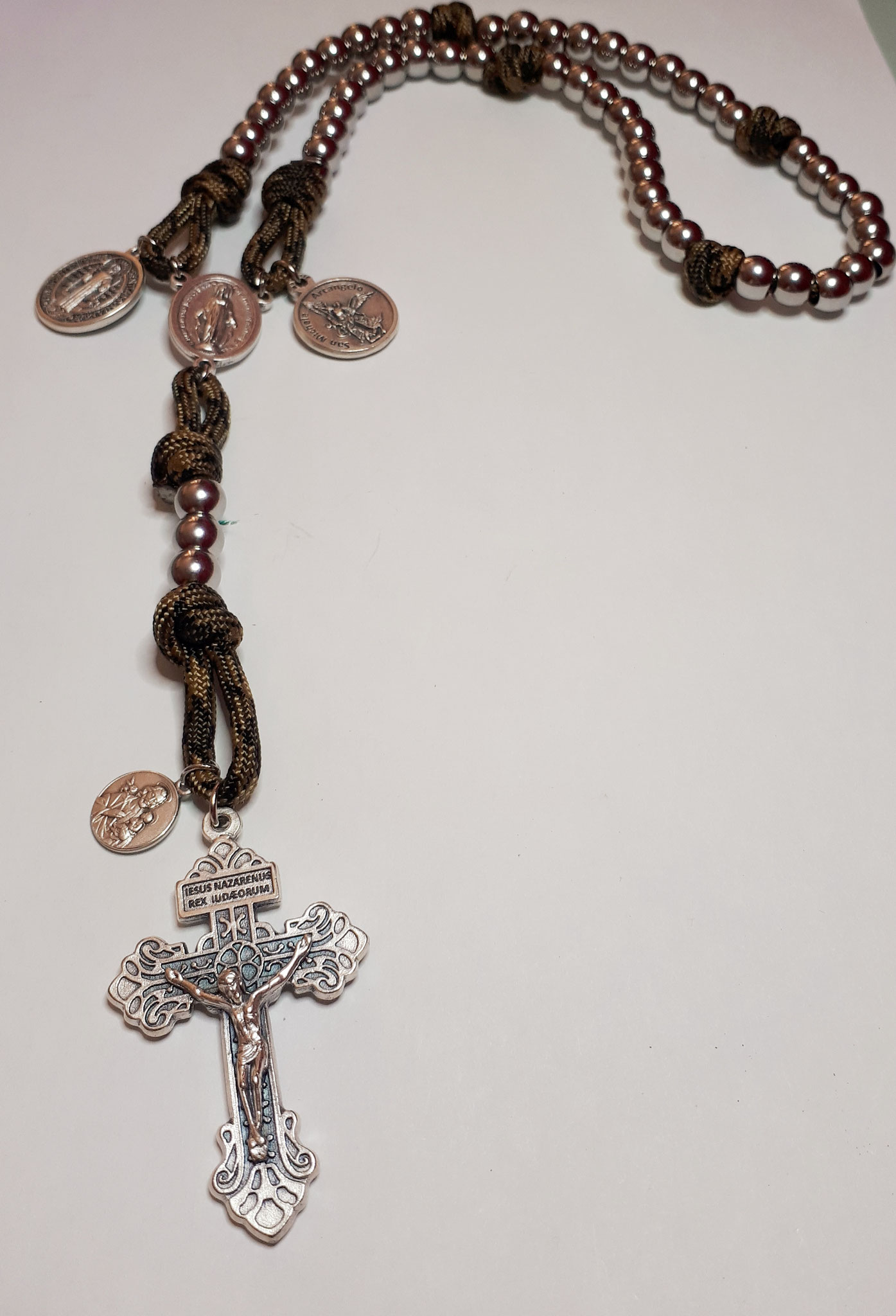 Medaglia San Benedetto Croce Ematite Perline Rosario Bracciale