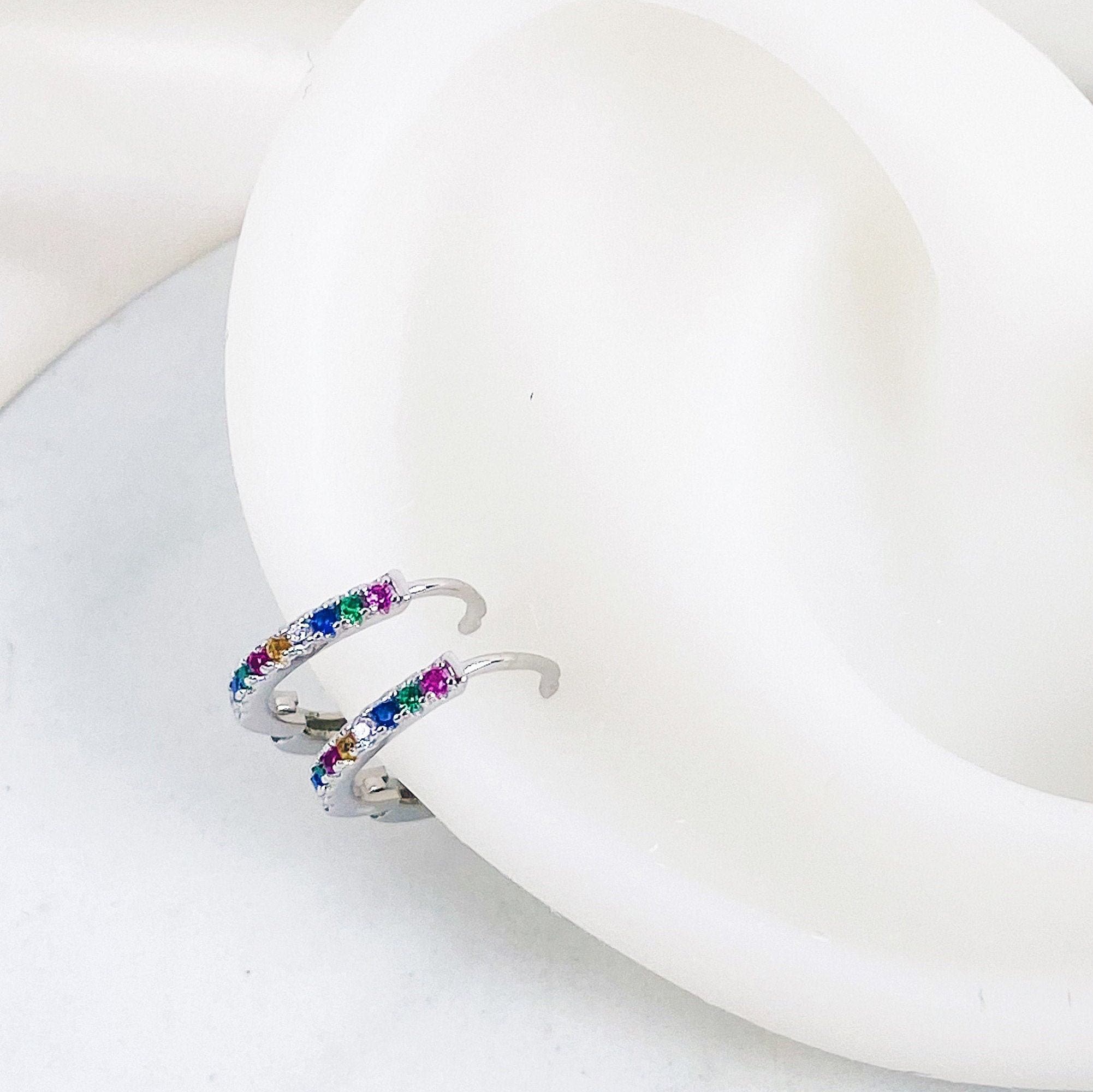 JewelryWe Anello Colorato CZ Per Uomini Donne Dichiarazione Arcobaleno Multi Colore Zirconi Eternità Fascia Anelli, Zirconia Cubica