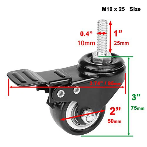 Confezione Da 2 Ruote Girevoli Per Sedia A Rotelle 200 X 50 Mm