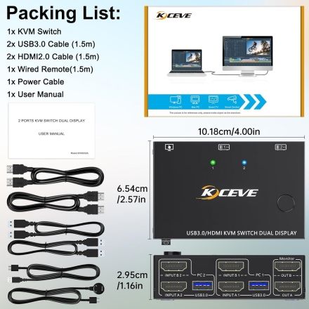 Switch Kvm Hdmi Dpofirs 2 Porte - Doppio Monitor Per 2 Computer, 4K 30Hz, HDCP 2.0 Doppio Monitor Computer