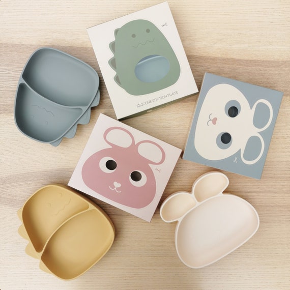 Set Pappa Svezzamento Per Bambini, 6 Pezzi Silicone Piatto Con Ventosa Ciotola, Tazza,Cucchiaio E Forchetta, Bavaglino Silicone, Antiscivolo Senza